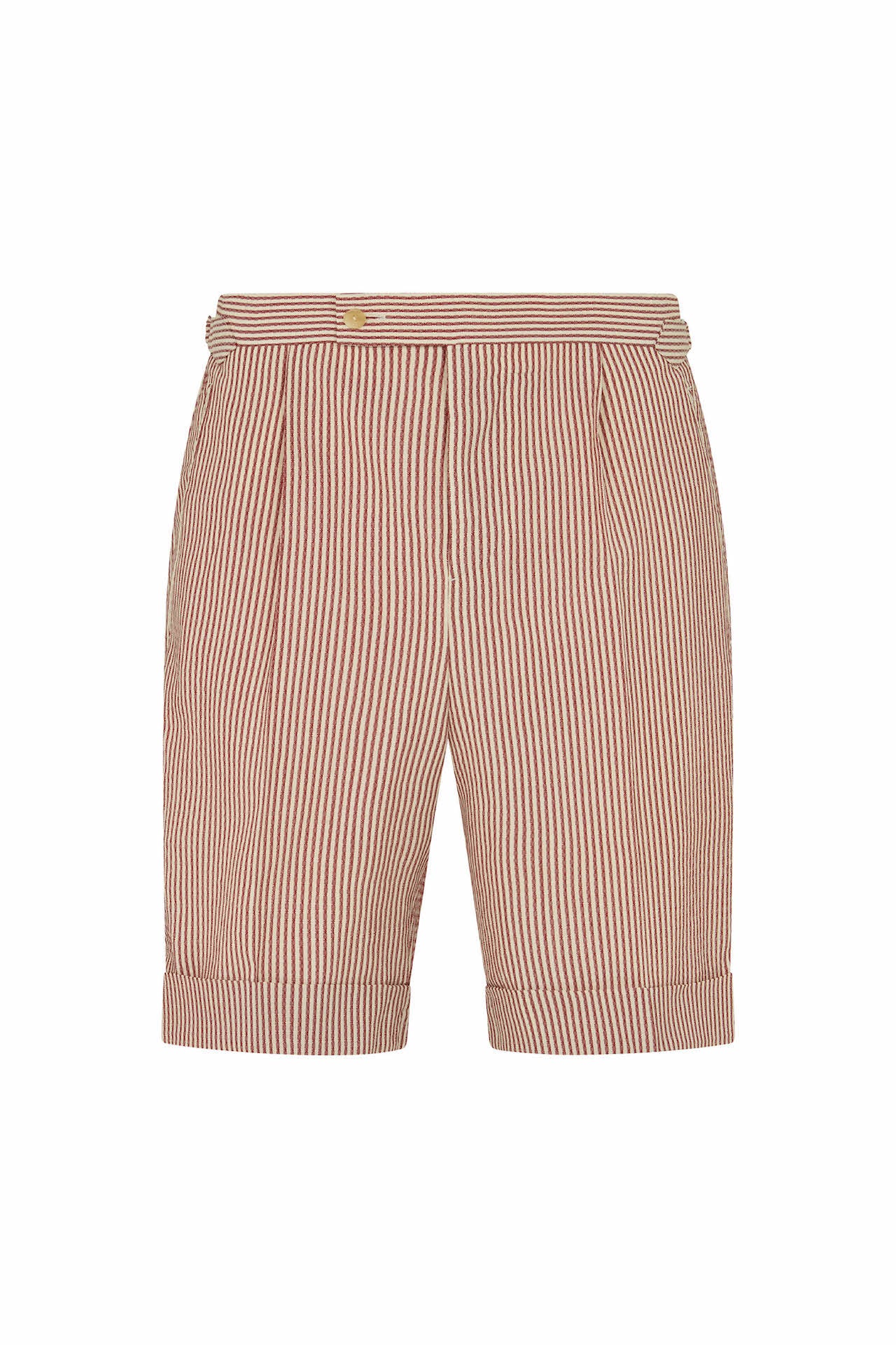 Elevate your warm-weather wardrobe with these classically tailored shorts in seersucker. Cut just above the knee, these pleated shorts work perfectly with either a shirt and lightweight sports jacket, or with your favourite Merino knitwear.